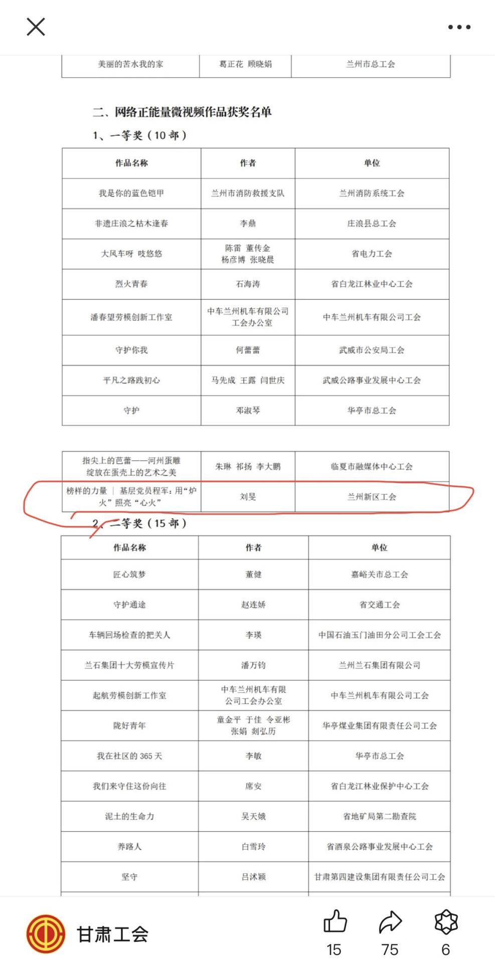 克日,甘肃省总工会和省委网信办团结开展的2024年“网聚职工正能量 争做甘肃好网民”主题运动获奖作品名单宣布,由化工热电有限公司工会主导拍摄,esball集团工会监制审核,经兰州新区工会推荐的视频作品《模范的实力 | 下层党员程军:用“炉火”照亮“心火”》在甘肃省1515部优异作品中脱颖而出,荣获一等奖。