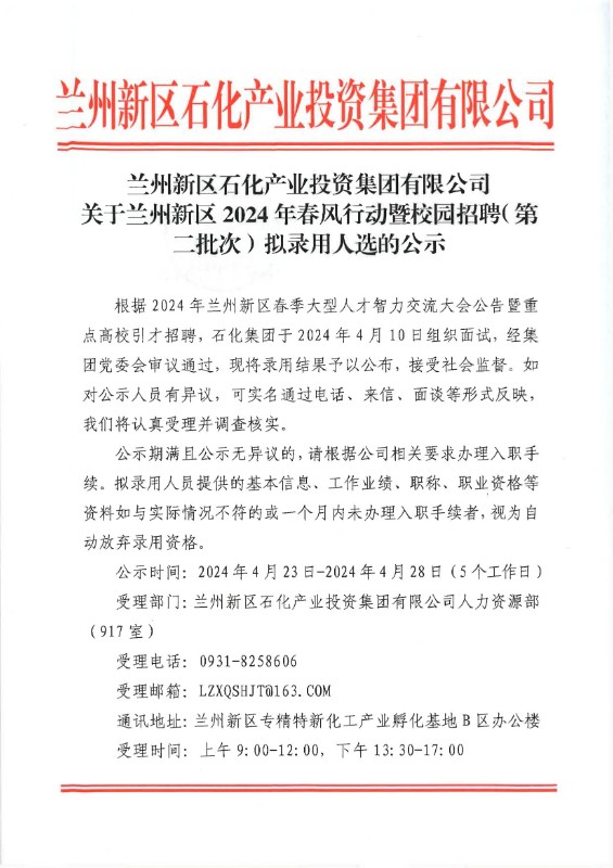 esball 关于兰州新区2024年东盛行动暨校园招聘(第二批次)拟任命人选的公示