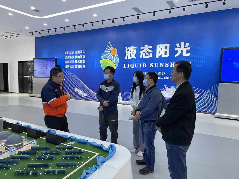 10月19日,国家能源集团新能源手艺研究院有限公司研发主管高腾飞、孟瑞红,陕西国华锦界能源有限责任公司高级工程师刘永平一行三人对兰州新区esball集团“液态阳光”项目举行调研,esball集团工会主席刘东斌等陪同调研。