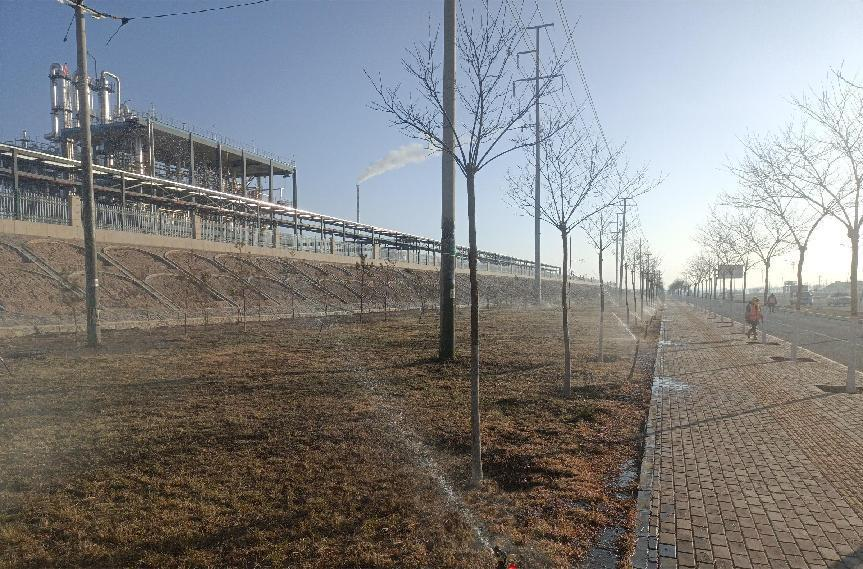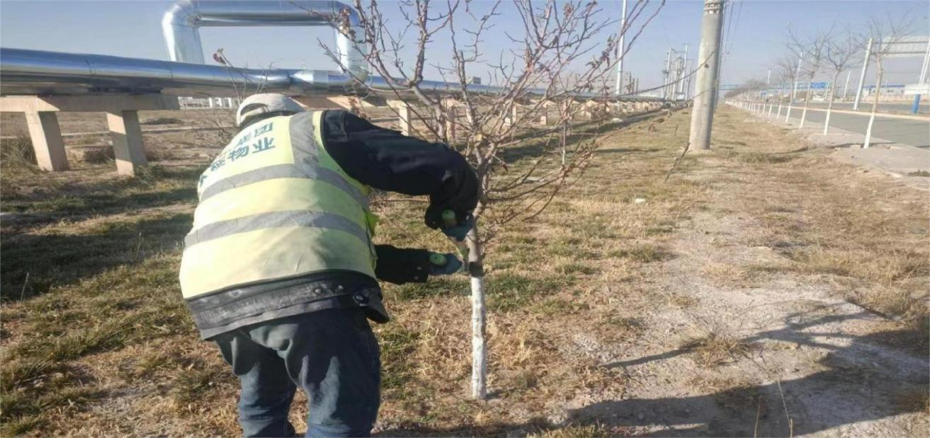 克日,为增强化工园区冬季绿化养护治理,进一步提高绿化景观效果和管护质量,兰州新区久泰物业公司多措并举开展冬季绿化养护治理事情,全心组织养护单位事情职员,对各辖区内管护绿地的乔木、灌木、草坪特殊是新植树木实时举行冬灌,并做好枯木杂草整理修剪事情,以防苗木遭受低温冻害和来年春旱及病虫害,周全提升绿化养护治理水平。